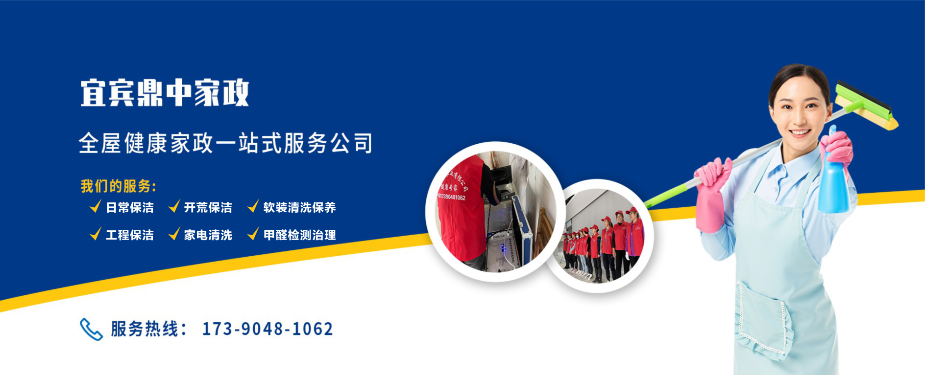 宜賓鼎中家政有限公司,是一家提供家庭健康一站式服務的新型家政公司,本公司提供,日常保潔,開荒保潔,甲醛檢測和治理,家電清洗,軟裝清洗,拋光打蠟,各種養(yǎng)護,工程服務,大型油煙機清洗和中央空調(diào)清洗等服務。        我公司起源于2012年,從當時單打獨斗的游擊隊,到現(xiàn)在發(fā)展成為一家為家庭提供一站式服務的新型家政公司,有專業(yè)的技術(shù)工程師和各項服務的專業(yè)團隊,服務過無數(shù)家庭和事業(yè)單位,比如理工大學、宜賓學院開荒保潔,宜賓商業(yè)銀行保潔等。        公司擁有完善的管理制度、高素質(zhì)的管理人員和家政服務人員,有專業(yè)的技術(shù)和專業(yè)的團隊,公司員工都經(jīng)過嚴格的培訓考核,除了有豐富的專業(yè)技能,還具有較強的吃苦耐勞精神和熱情的服務意識,為客戶提供高品質(zhì)和高標準的服務,讓客戶獲得更******的高端服務體驗。        誠信為本,品質(zhì)至上,服務于千家萬戶        宜賓鼎中家政有限公司--------竭誠為您服務 聯(lián)系人:楊總 電話:17390481062(微信同號) 地址:四川省宜賓市敘州區(qū)朱家坡路1號緹香灣